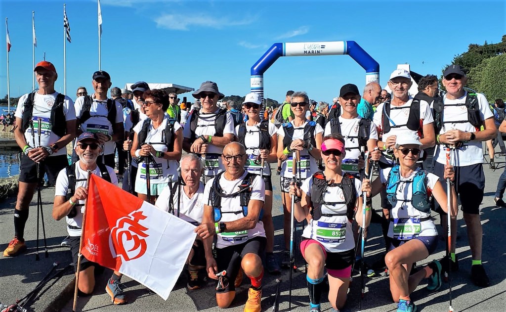 Un départ sur le port d’Arradon en présence de la championne de France Christiane Salvi et du 2ième au champion de France Sébastien Dos Santos de la discipline Marche Nordique et les voilà arpentant le chemin des douaniers pour finir sur le port de Vannes.