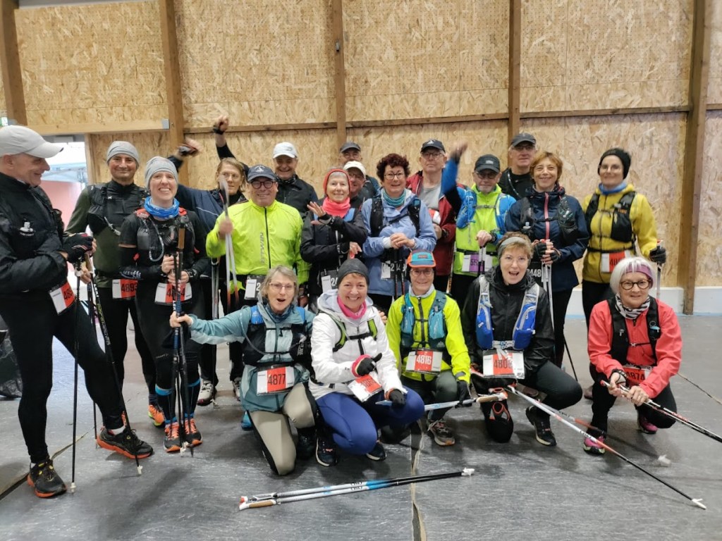 Un départ donné au complexe sportif du Poiré, entourés de 92 marcheurs, nos Nordiques s’élancent au milieu de coureurs et de traileurs dans une belle ambiance festive.