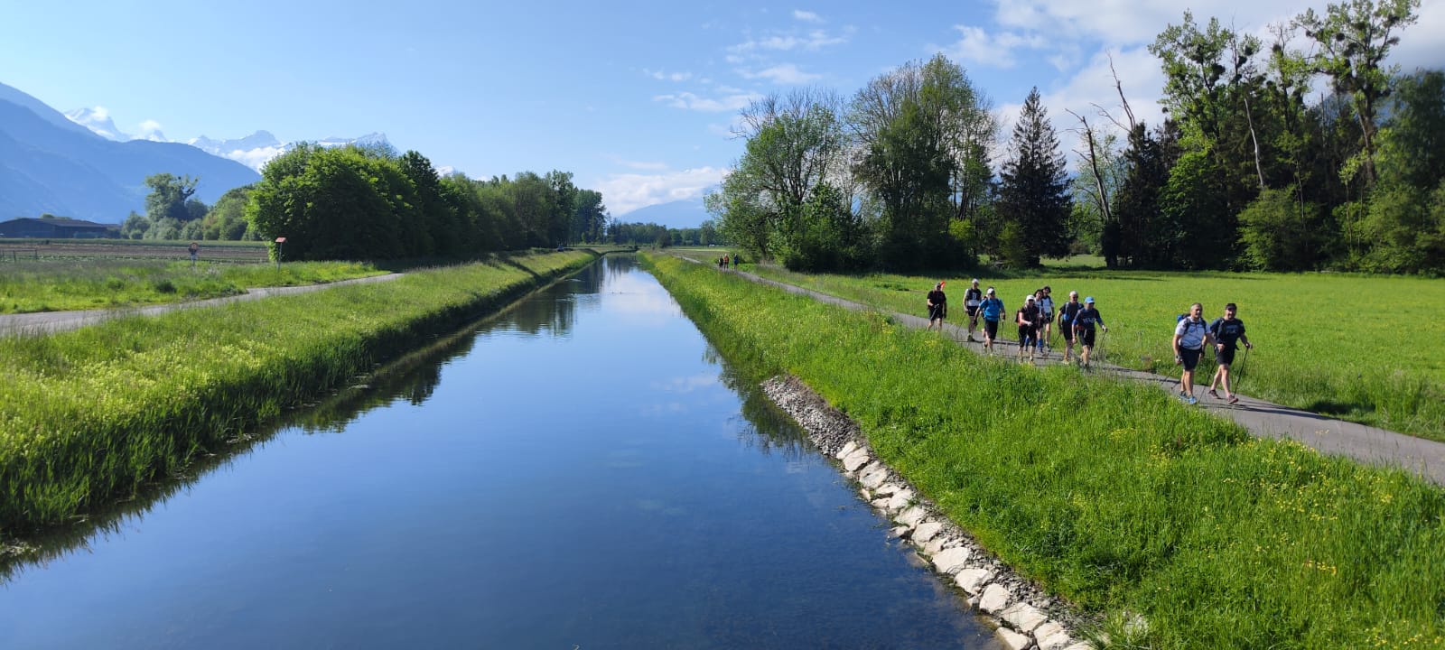 Les étapes vont s’échelonner de 30 à 45 kms par jour, selon les groupes, avec des dénivelés allant jusqu’à 650 mètres ; les ascensions sont parfois difficiles à cause de la chaleur. On récupère de l’eau tout au long du parcours, grâce aux bénévoles de l’organisation qui nous chouchoutent. Tout au long du trajet la Vendée est à l’honneur grâce à nos portes drapeaux et l’accueil de la population des Helvètes est chaleureux et bienveillant.
