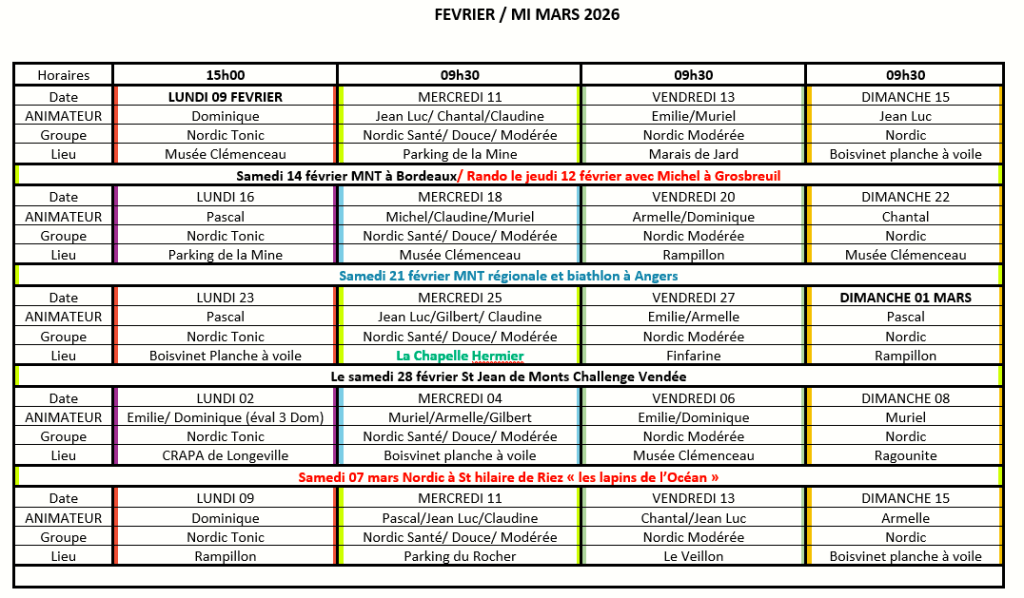 Prévisionnel sorties hors Jard sur Mer 2025/2026